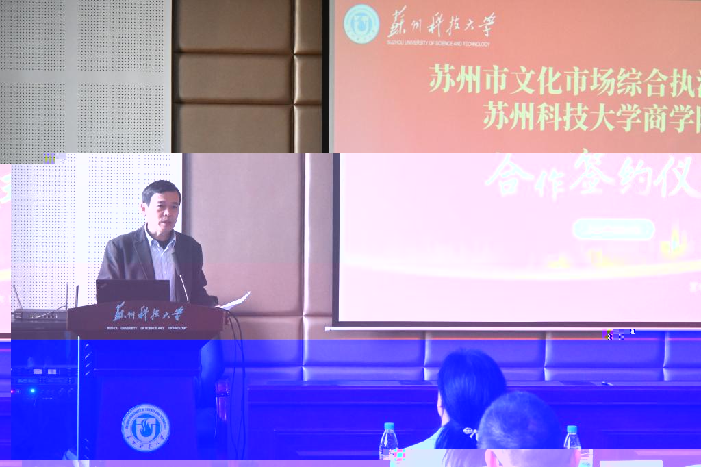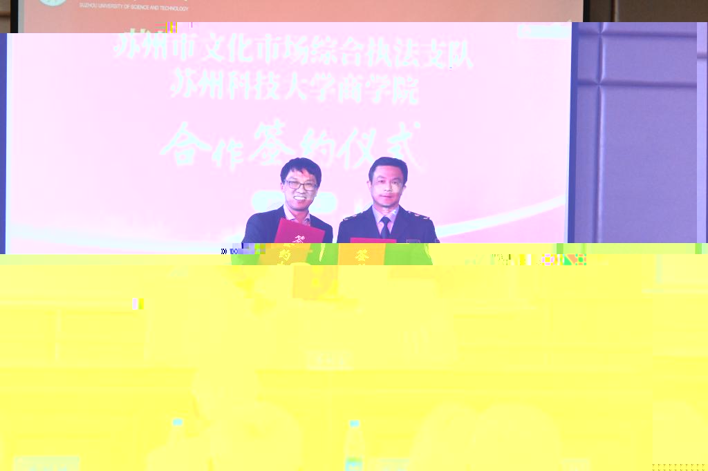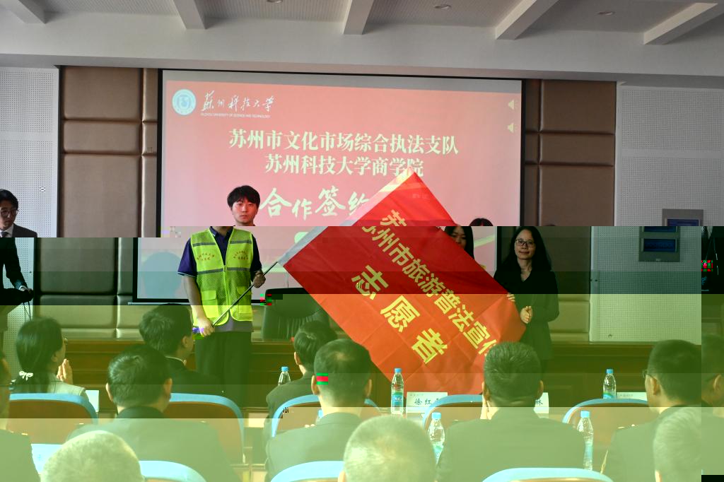 4月27日下午,利记SBOBET官网APP與蘇州市文化市場綜合執法支隊合作簽約儀式在利记SBOBET官网APP報告廳成功舉行。蘇州市文化廣電和旅遊局副局長徐紅霞、蘇州市文化市場綜合執法支隊支隊長王小林、蘇州市文化廣電和旅遊局市場管理處處長鐘涵一、利记SBOBET官网APP黨委書記江忠華、黨委副書記兼副院長董現珠、旅遊管理系邢夫敏教授及60餘名志願者參加簽約儀式。